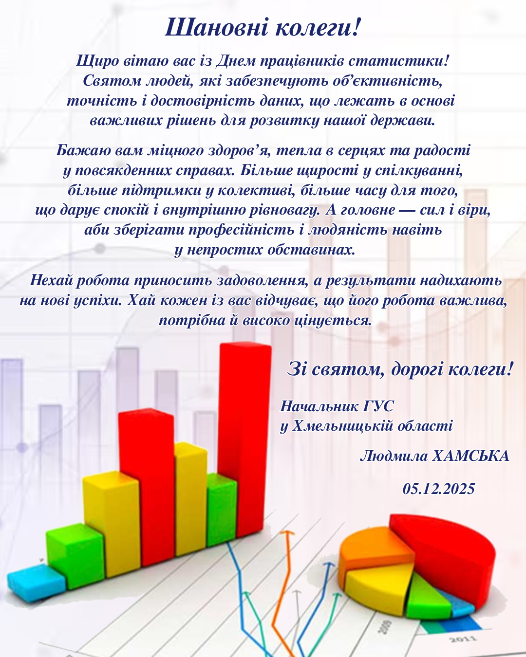 Вітання начальника Головного управління статистики у Хмельницькій області Людмили Хамської з Днем працівників статистики